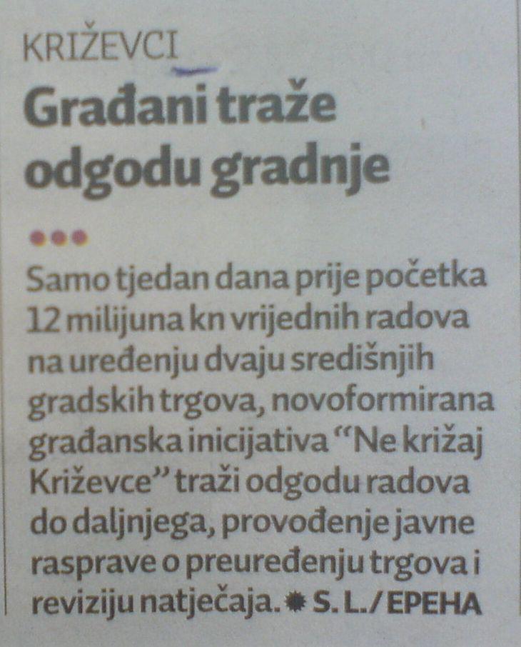 – Odgoda početka radova na preuređenju središnjih križevačkih trgova do daljnjeg