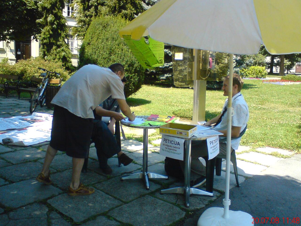 Prva akcija inicijative u proljeće 2008. bila je „Gradski trgovi – je li novo i bolje?!“ sa sljedećim aktivnostima usmjerenim prema križevačkoj i široj javnosti, vezanim uz obnovu križevačkih trgova Antuna Nemčića i Josipa Jurja Strossmayera:
